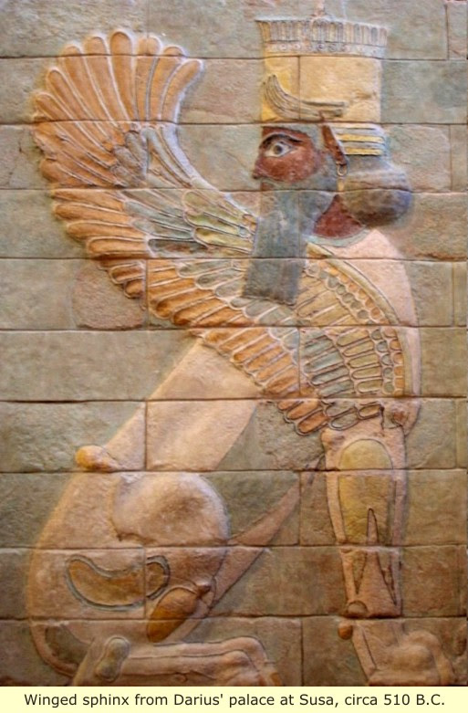 Egyptians, Greeks, Anatolians, and Persians also share the use of Sphinx's (Human Headed Lions), as mythical creatures.